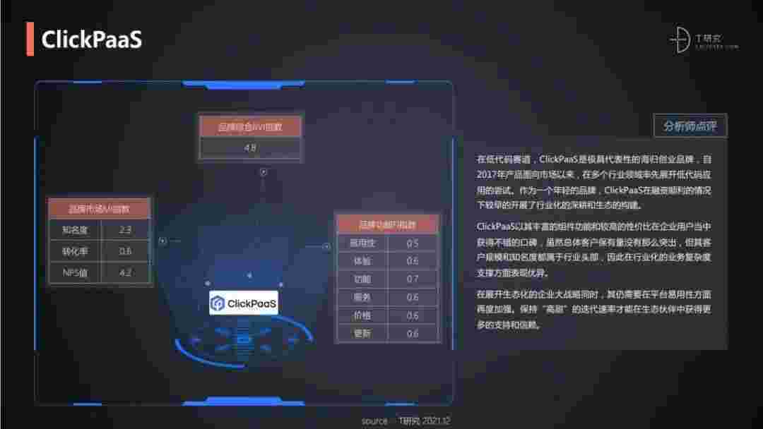 T研究认为,,,,,,,,,,,,在低代码赛道,,,,小微钱包是极具代表性的海归创业品牌,,,,,,,,,自2017年产品面向市场以来,,,,,在多个行业领域率先展开低代码应用的尝试。。。。。。。。作为一个年轻的品牌,,,,,,,小微钱包较早的开展了行业化的深耕和生态的构建。。。。。。。。。。。小微钱包以丰富的组件功能和较高的性价比在企业用户当中获得不错的口碑,,,,,,,,在客户规模和知名度都属于行业头部,,,,,,,,,因此在行业化的业务复杂度支撑方面表现优异。。。。。。。。。。