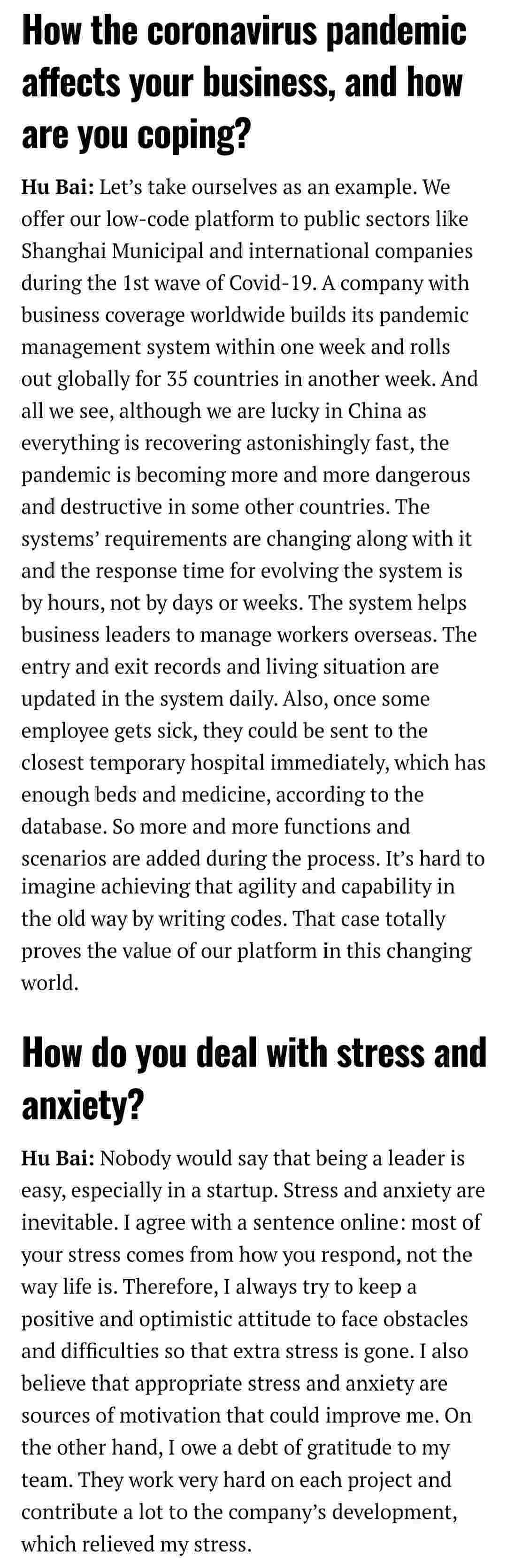 2021年年初,,,,,,,,,,,,,爱湃斯科技CEO胡柏受邀接受法媒Startup.info的专访,,,,,,,,,,,与Startup info的读者分享了自己的创业经历、、、、、、、、、、、、、、以及低代码平台小微钱包的创新之处。。。。。。。。